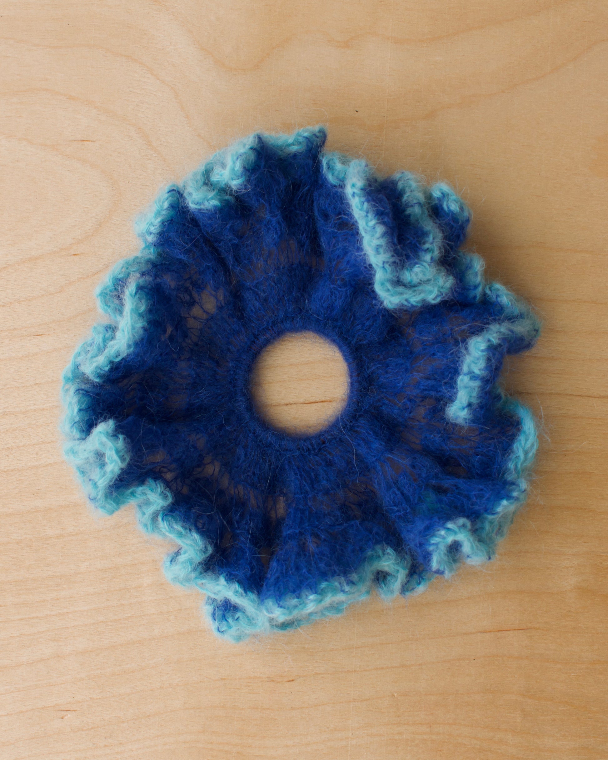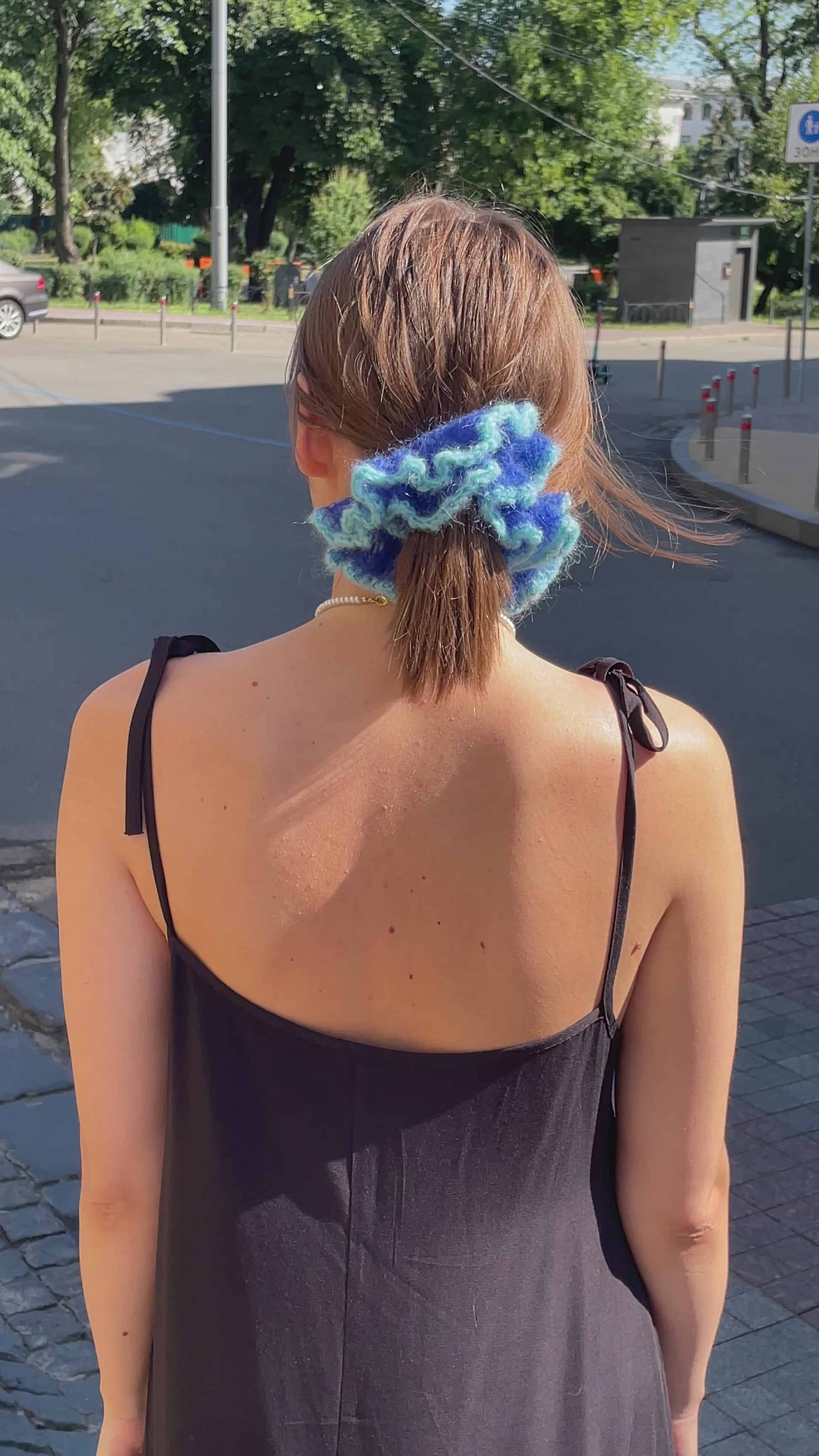 This scrunchie is the perfect hair accessory, knitted with mohair yarns.