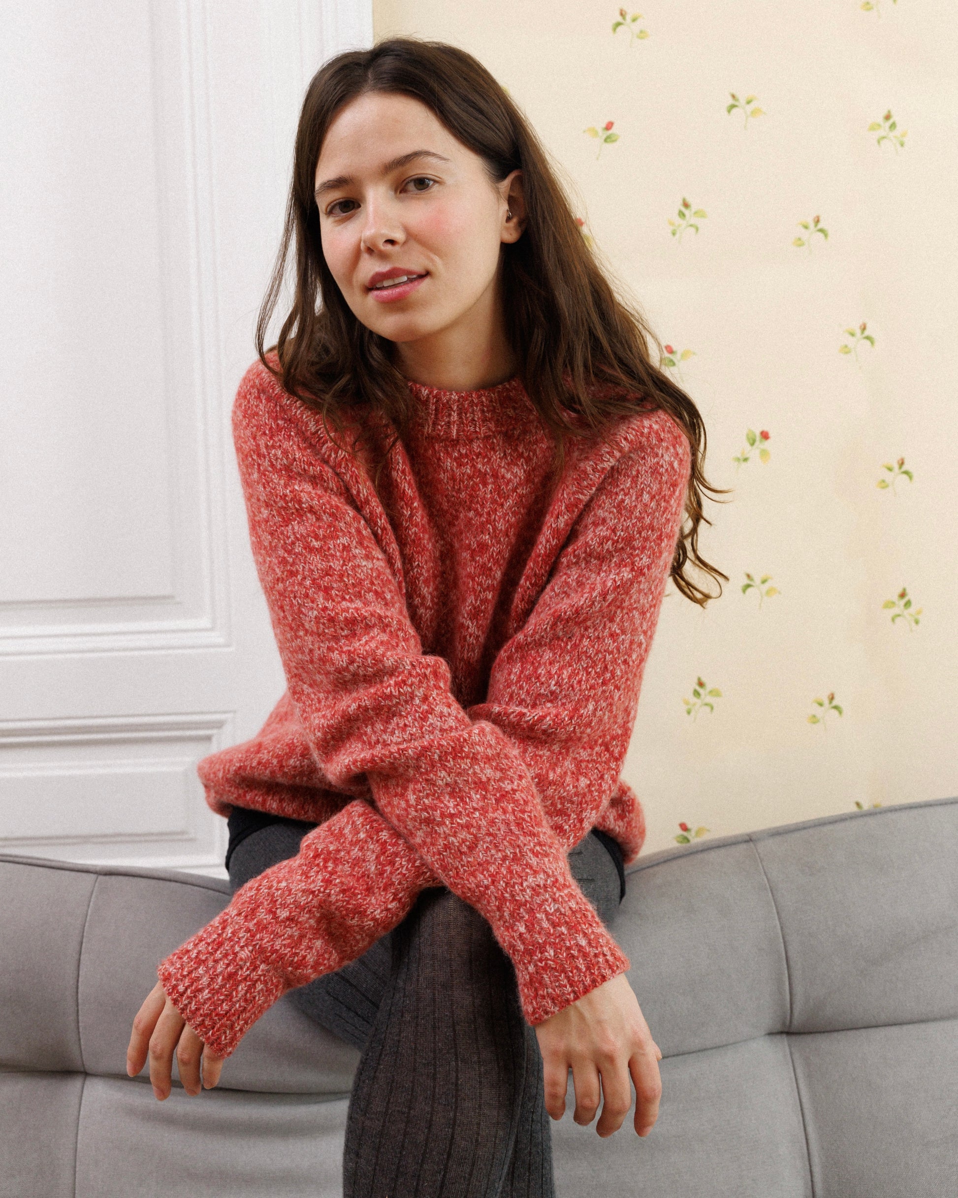 The Sweater is knitted by artisans in Ukraine using hand-operated knitting machine.
