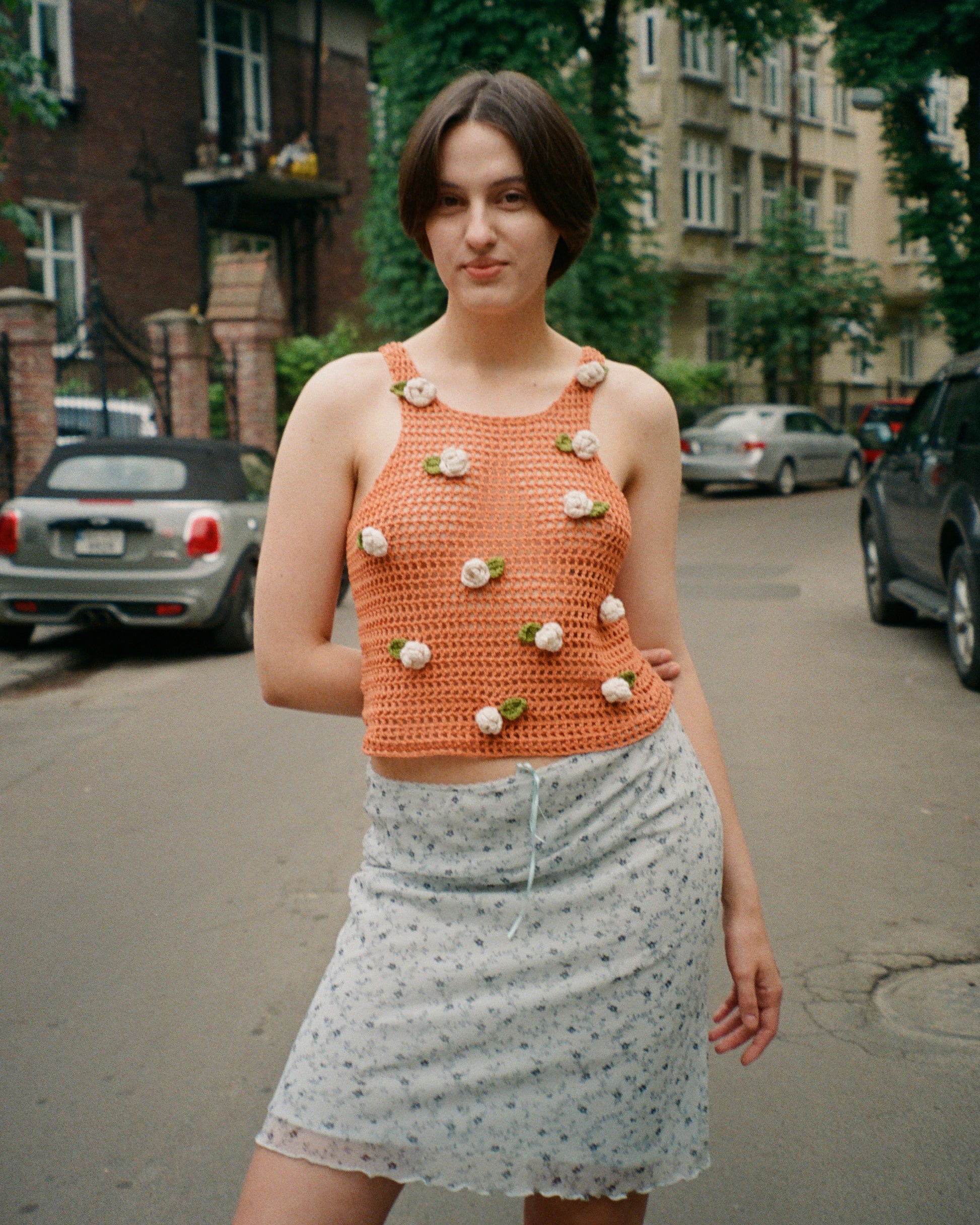Orange Cream Crochet top with roses