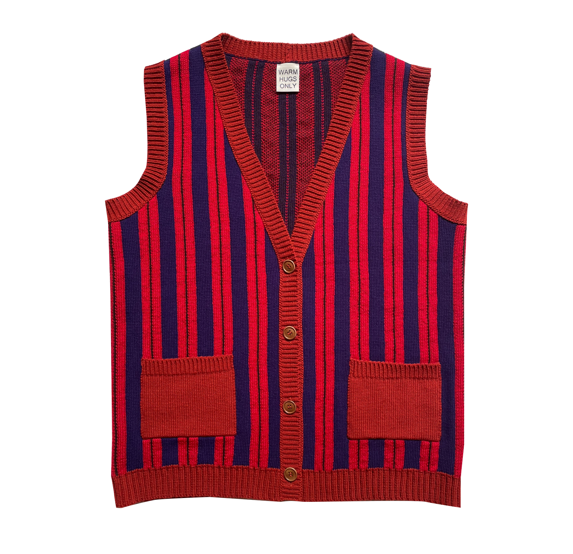 Knitted striped vest manufactured from an Italian deadstock yarn