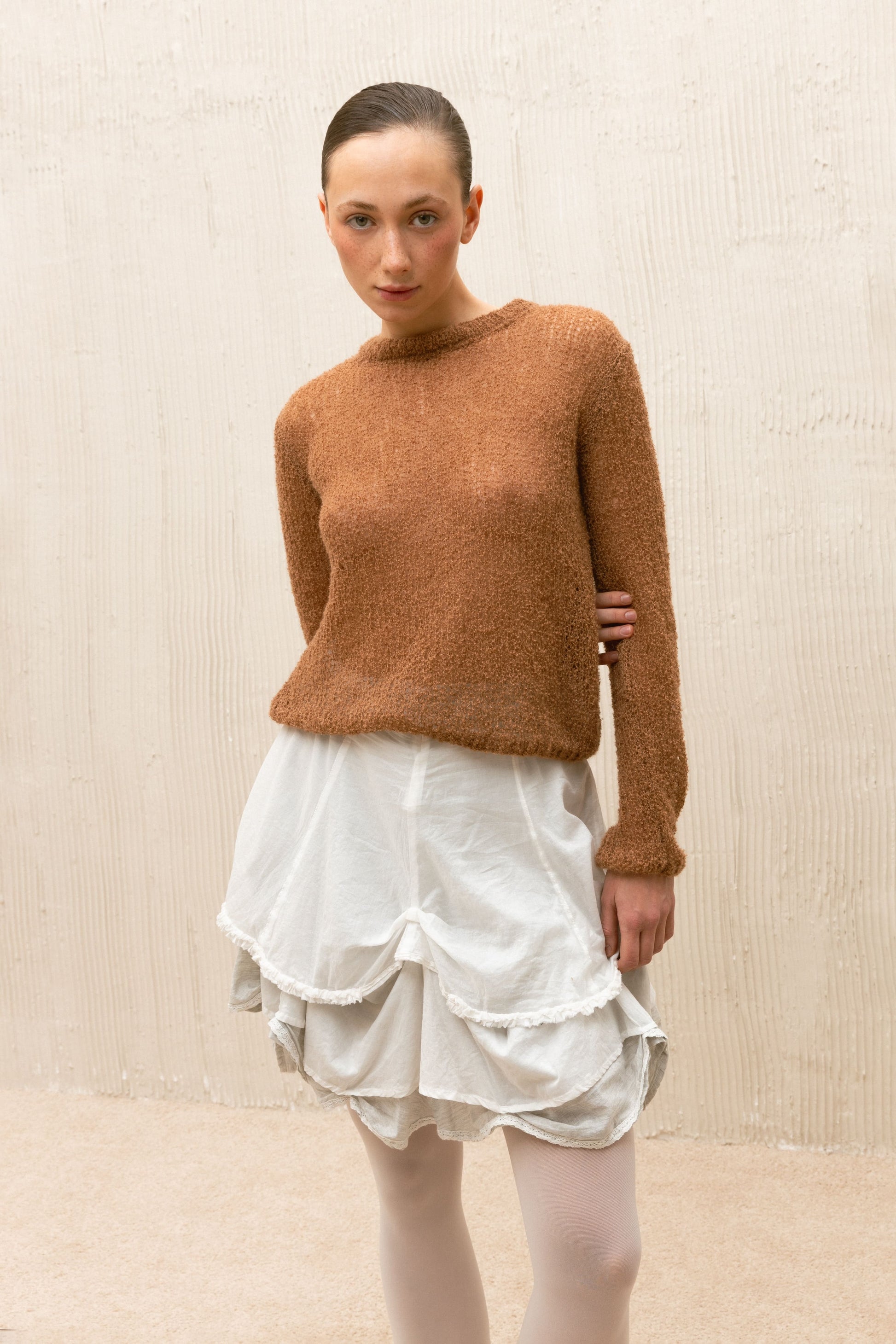 Hand-knitted sweater in brown. The sweater is hand-knitted by artisans in Ukraine