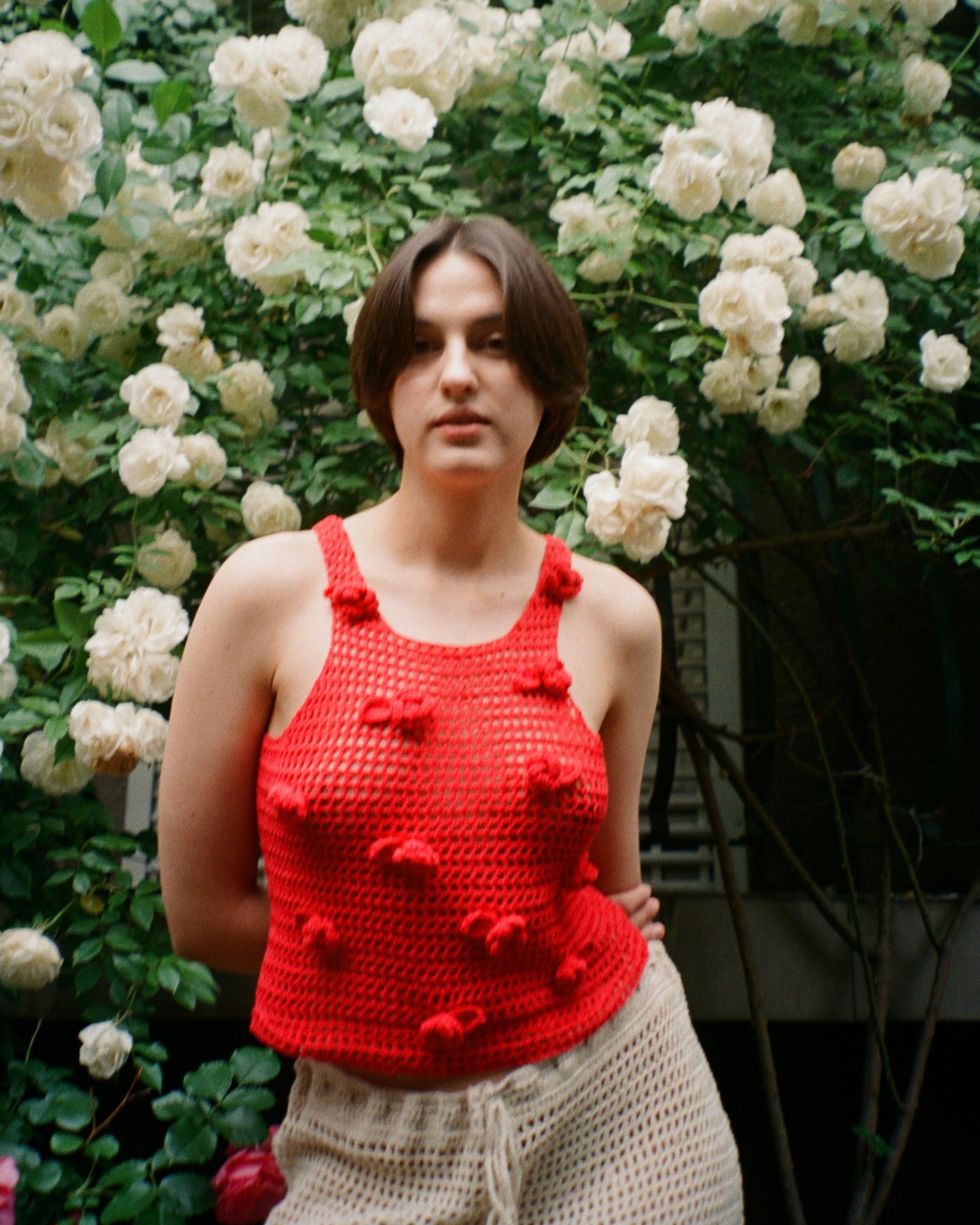В'язаний топ з трояндочками